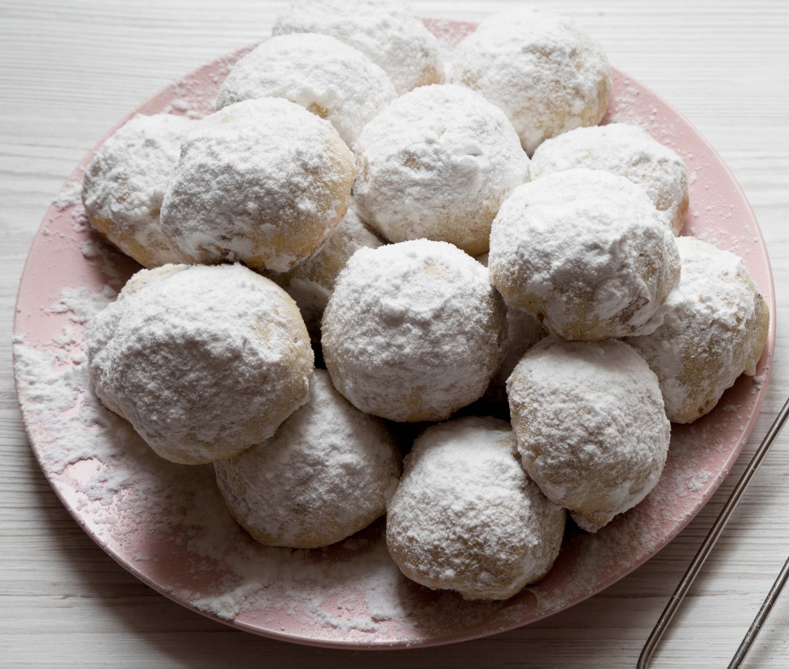 - While warm, roll in powdered sugar. Let cool and re-roll in powdered sugar before serving.